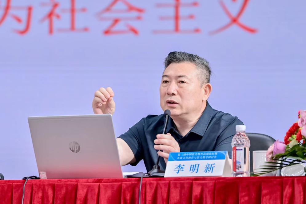 开幕式后,论坛进入主旨报告和案例研讨环节。教指委语文专委会主任委员、北京小学校长李明新做《在语文教学中继承和弘扬革命文化的思考》主旨报告。报告指出,教学者要立足语文课程特点、提高施教水平,从学科教学走向学科育人。教指委语文专委会副主任委员、泡泡浴