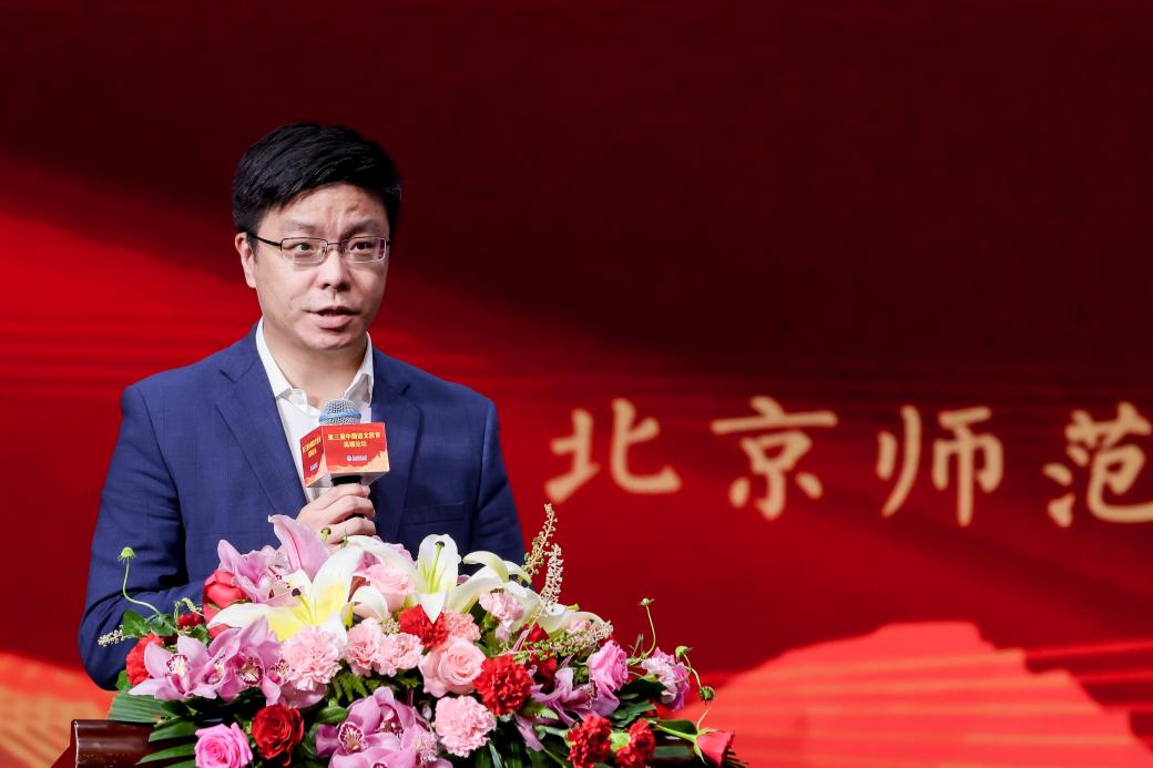 党委副书记、珠海校区党委书记韦蔚致辞。韦蔚书记指出,继承和弘扬中华优秀传统文化、革命文化、社会主义先进文化,培养担当民族复兴大任的时代新人是新时代语文教育的关键问题。北师大作为中国基础学科师范教育的排头兵,致力于统筹、推动基础教育高质量发展,有能力、有信心准确把握语文学科中革命文化教育的方向。韦蔚书记衷心希望论坛能够为全国语文教育工作者提供有力的支持指导,期待革命文化教育在新时代语文教学中迸发出更强劲的力量。