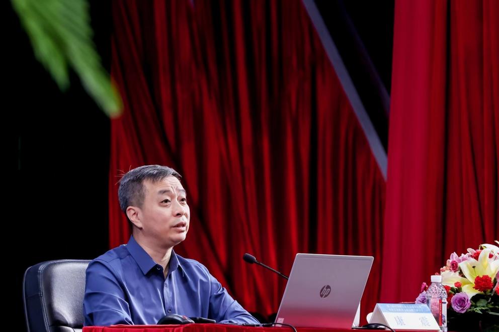 康震教授做《风展红旗如画——毛泽东诗词的理想信念和史诗境界》主旨报告。报告分析毛主席诗词中诗史的精神和史诗的境界,提示教师要在充分理解的基础上激发学生的革命文化情怀。
