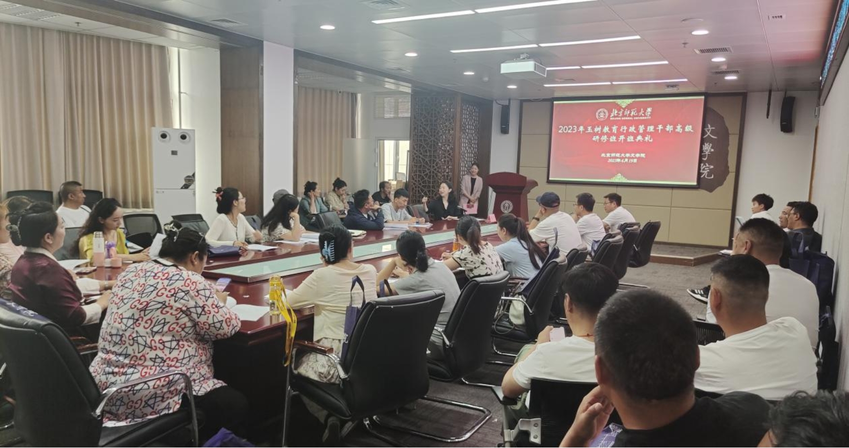 一直以同样的姿态迎接各位老师的到来,希望大家在学习中感受到师大对教师的爱,体会到自己的教育责任感和使命感,之后再将这份爱传递给自己的学生。最后,向老师介绍了此次培训的课程安排,课程设计综合考虑到学员结构组成,涵盖心理、教育、管理等方面的内容,具有综合性的特点,希望老师们在接下来的学习当中能够有所收获,度过一段愉快的研修时光。