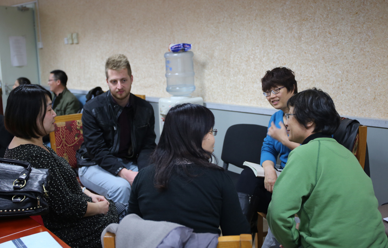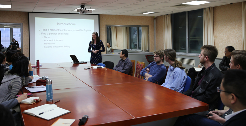 2015年3月25日,本学期第一堂英语培训课在院教职工活动室(B708室)举行。本堂课为“英语口语”课,Sara Rock、Thomas Lewicki、Dallas Taylor、Scott Laws、Trent McMinn共5位外教到场授课,本院教师20余人参加了本课的学习。课程由Sara老师主讲,泡泡浴