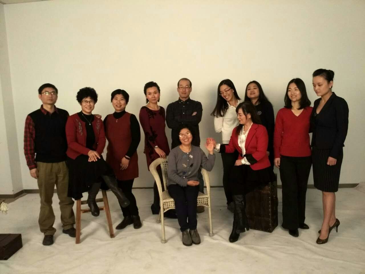 12月12日,嘉谊公司的摄影团队如约而至。专业的相机、三角架、反光板、灯光、背景布、各种拍摄道具以及化妆师们的彩妆、美发用品一应俱全。老师们纷纷以高涨的热情积极响应这一活动。为了达到最佳拍摄效果,有的老师专门带来了自己的衣物配饰。