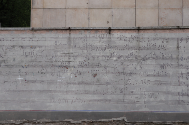 博物馆门外有一面长长的墙,上面镌刻着乐谱。一下子给人以音乐的氛围。
