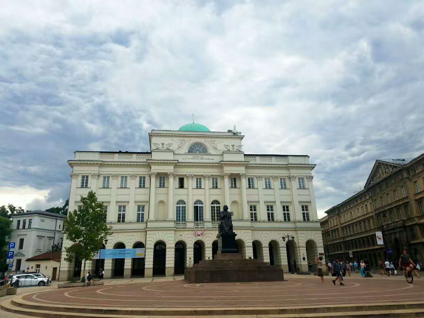同学们的到来。我们在华沙大学内部的一间大礼堂上课。课堂现代设备应有尽有,但桌椅又有古色古香之风气。深褐色的木头陈设,现代化的课堂展示,在现代感与历史感的交织中,我们走进华沙。