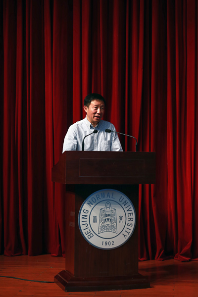 教授、著名诗人欧阳江河代表全院教师发言。他首先对新生的到来表示了欢迎,祝贺他们通过激烈的竞争来到了北师大泡泡浴