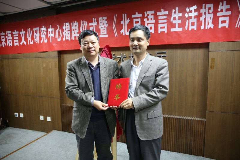 为贺宏志博士颁发了北京语言文化建设研究中心兼职研究员聘书。