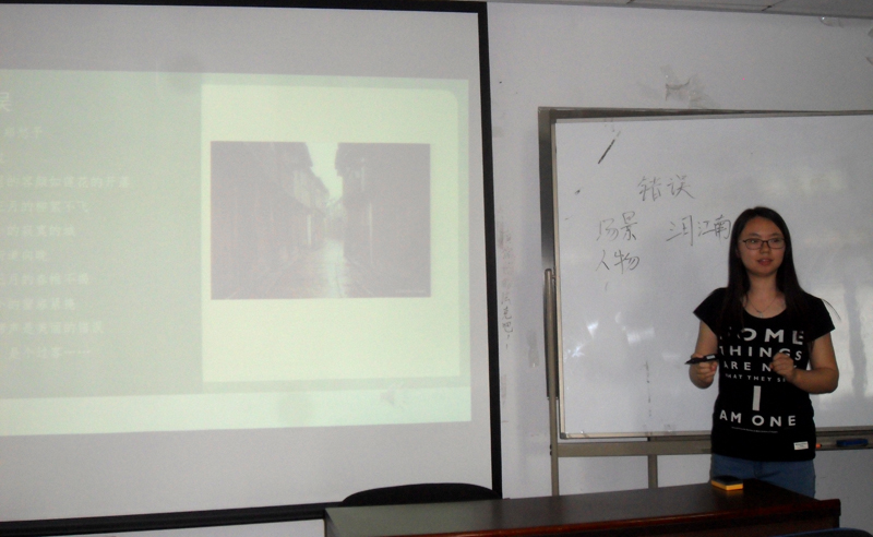 决赛由教案、模拟授课、即兴演讲和提问四个环节组成,总分为200分。从初赛中脱颖而出的五位选手在决赛环节都有着非常出色的表现,梁月同学带来了高潮迭起的《鸿门宴》、吴海鹏通过《行路难》诠释了诗人沉郁之中迸发的自信、罗巧丽同学以一首《雨巷》展现了极具伤感气息的江南小巷、郭宏艳同学带着大家一同与张岱欣赏西湖雪景,而韩晓媛同学则以一首《错误》拨动了在场所有老师和同学们的心弦。整场比赛如同高手对垒,精彩非凡,评委们的点评更是高屋建瓴,十分具有针对性的建议让每一位选手都获益匪浅。经过激烈地角逐,韩晓媛同学和郭宏艳同学凭借出众的表现,赢得了评委老师的大力肯定。尤其是韩晓媛同学,不仅教学设计思路清晰,现场表现也十分镇定从容,在授课过程中循循善诱,取得了极为理想的效果。