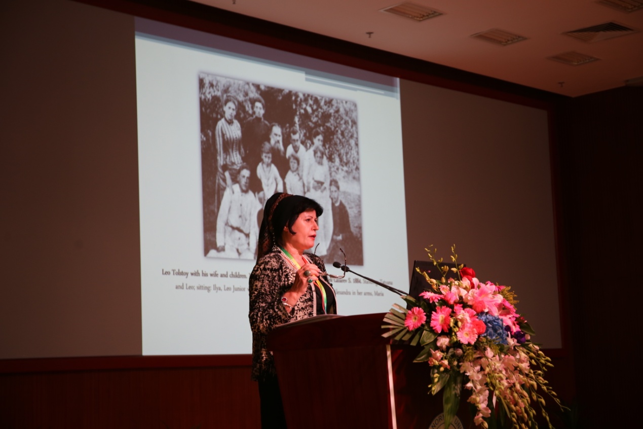 最后,俄罗斯皮亚季戈尔斯克国立语言大学文学创作系顾问瓦基多娃博士(Dr. Malkan Vakhidova)的发言主题是“昆塔·哈吉的教义对列夫托尔斯泰世界观的影响”。她叙述了列夫·托尔斯泰在高加索地区的经历和对昆塔·哈吉的追随,对祷告这一宗教形式的推崇,以及对相关教义的接受和对车臣传统的认同。