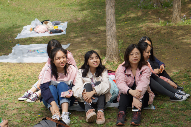上午10点,同学们在奥森公园南门集合,开启了徒步踏青之旅。虽然师大校园的绿化也是极好的,但大多数时候同学们都被“困”在教室、宿舍里,很少有机会能亲近自然,虽然春光就在眼前,却不能尽享。但在这次活动中,同学们走出高楼,与春日的微风暖阳、花草树木“零距离接触”,在徒步的过程中感受到鸟语花香、湖光山色。钱锺书先生在《窗》中写道:“若据赏春一事来看,我们不妨这样说:有了门,我们可以出去;有了窗,我们可以不必出去。”但是,窗外的春天总是隔着一层窗户,只有走进春天,春天才是可以看到、嗅到、触碰到、感受到的。