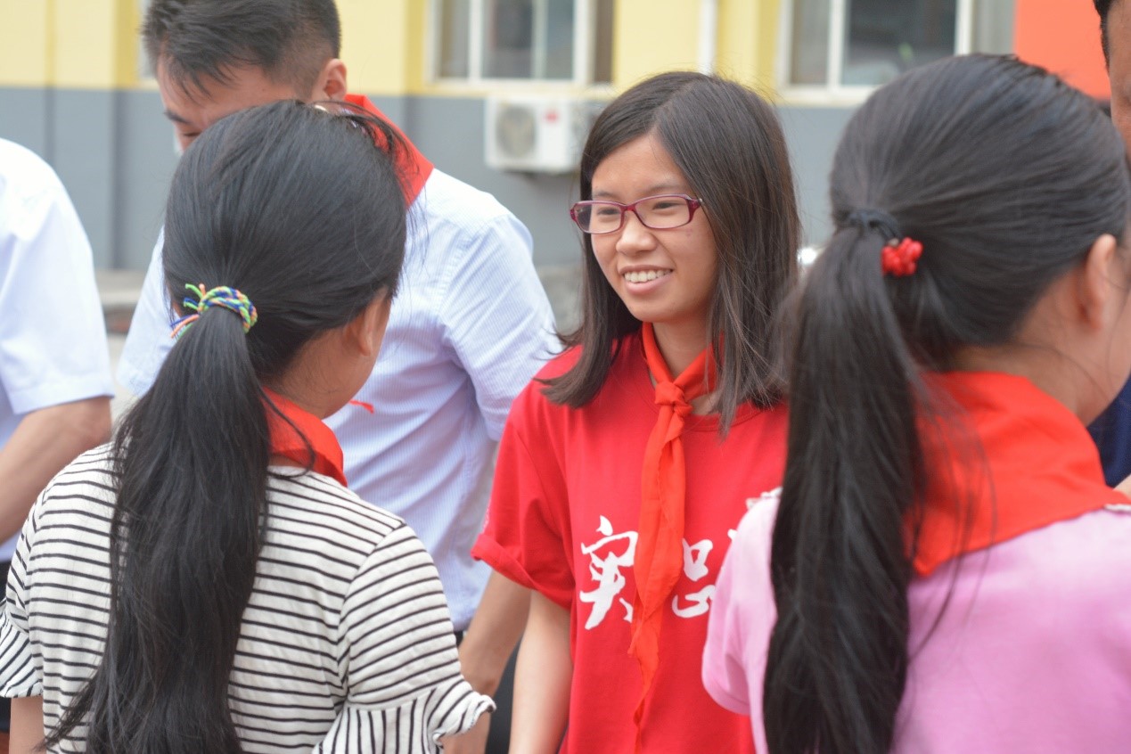 支教团负责人聂阳欣出席启动仪式,泡泡浴